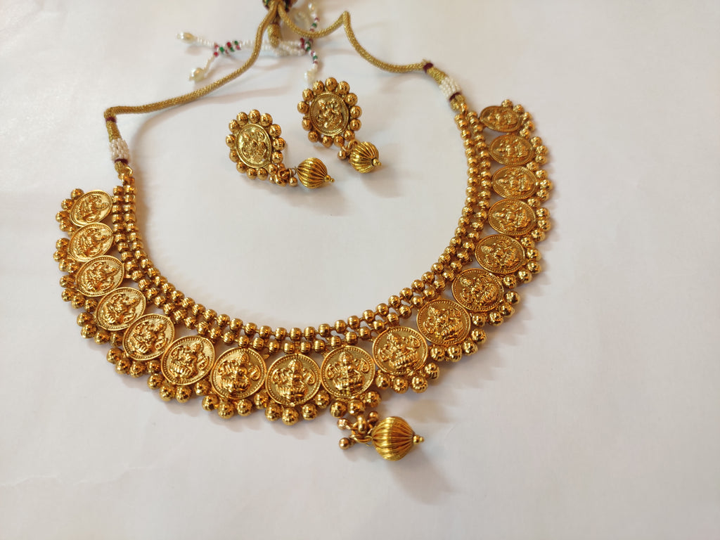 Sale package : 1 necklace and 1 pair earrings Color : Antique golden Disclaimer : Product colour may slightly vary due to photographic lighting sources or your monitor settings. Jewellery Care : Keep it away from perfume/Sprays and water.Use airtight box to store the jewellery.