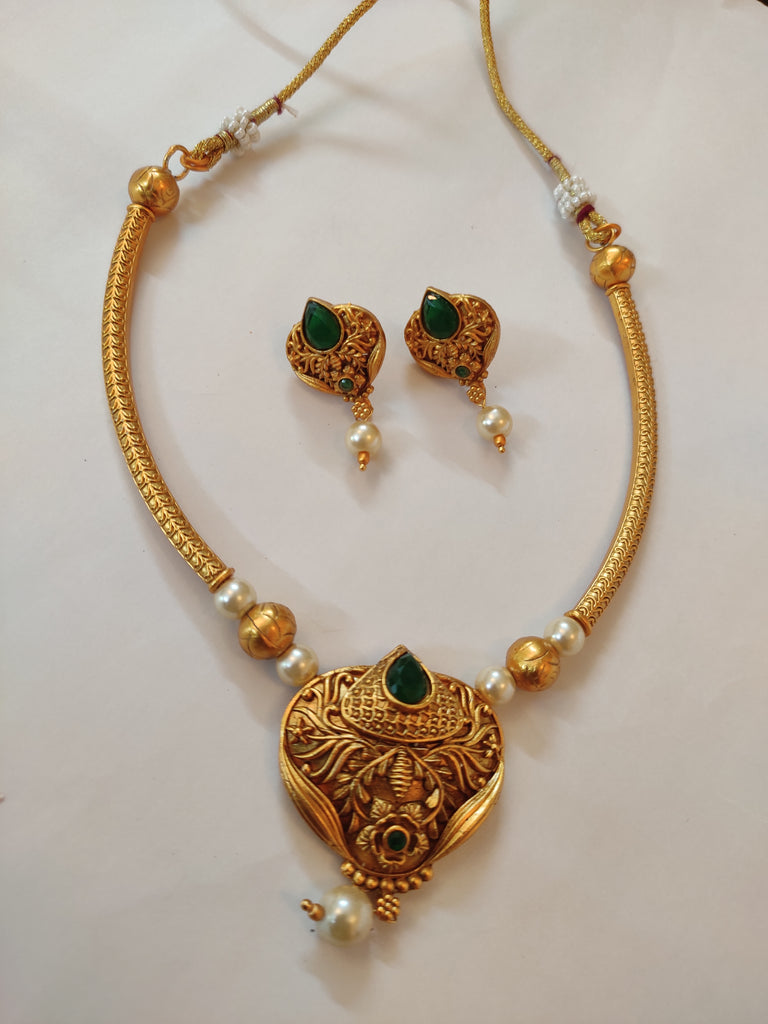 Sale package :1 necklace and 1 pair earrings Color : Golden matte Disclaimer :Product colour may slightly vary due to photographic lighting sources or your monitor settings. Jewellery Care:Keep it away from perfume/Sprays and water.Use airtight box to store the jewellery.